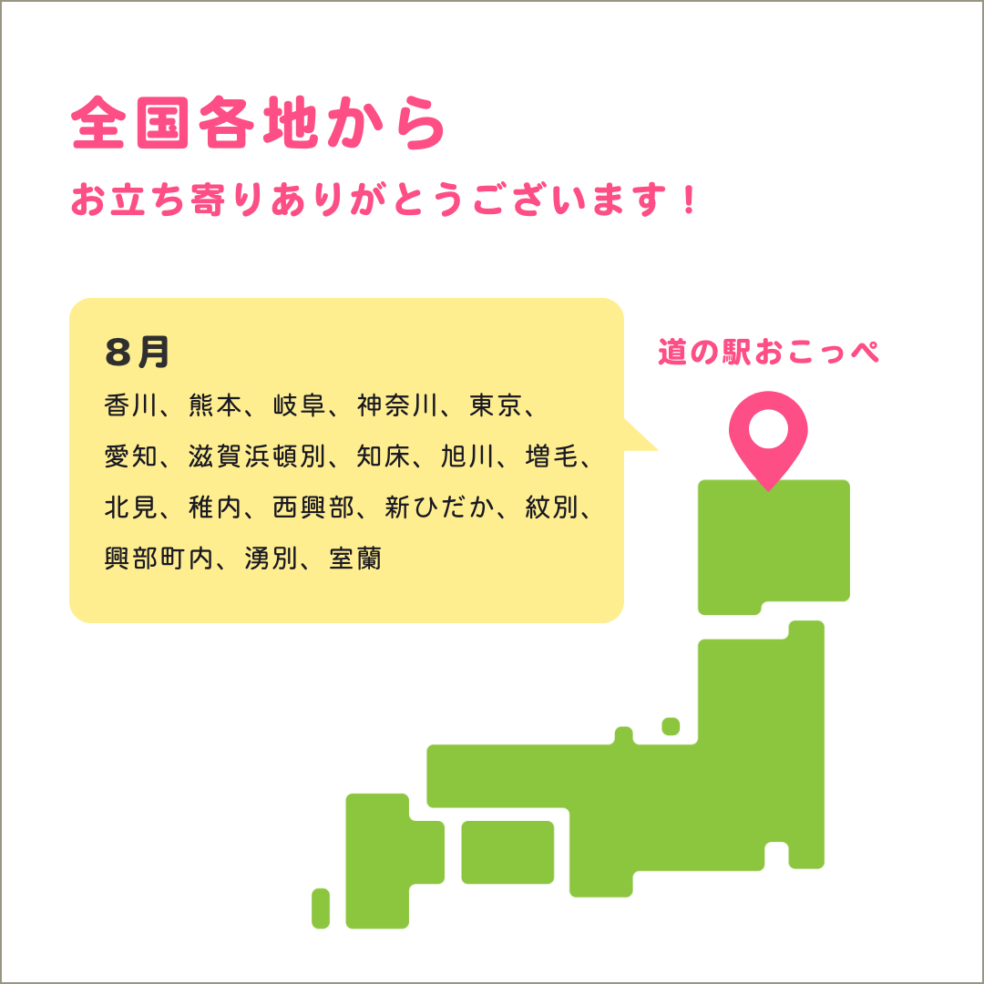 8月はお祭りやお盆休みもあって、たくさんの方に道の駅おこっぺへお立ち寄りいただき、とってもにぎやかな月になりました✨