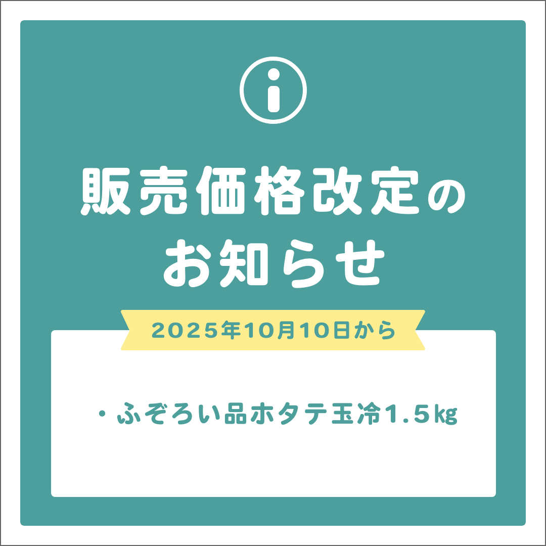 この度、「【ふぞろい品】ホタテ玉冷1.5kg 北海道オホーツク産」につきまして、