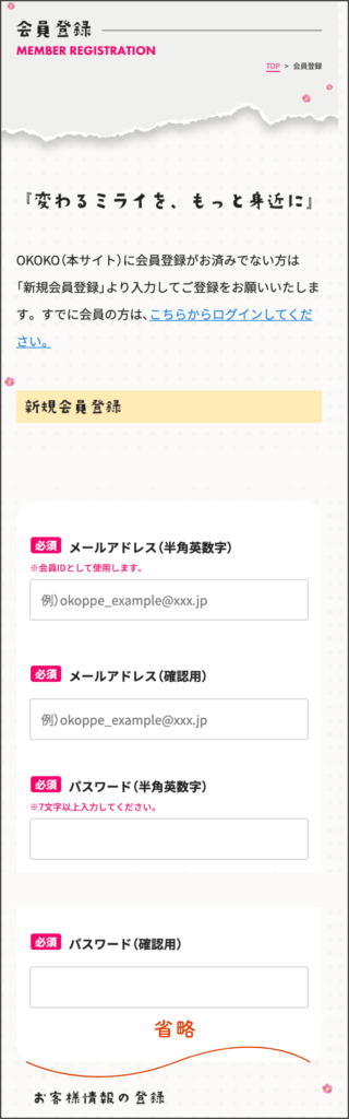「ログイン情報」と「お客様情報」を入力いただきます。