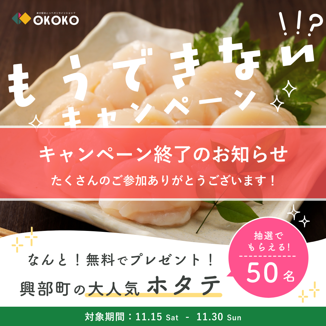 【 キャンペーン終了! 】興部町のホタテ50名様にプレゼント企画!
