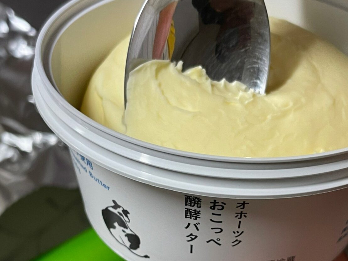 今回使用した オホーツクおこっぺ醗酵バター」 。ミルクのように濃厚でありながら、フレッシュで爽やかな風味を持っています。